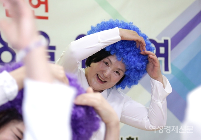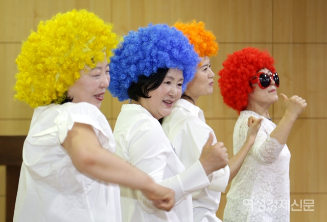 곧바로 김씨를 비롯해 박원순 서울시장의 부인 강난희씨, 이재명 성남시장의 부인 김혜경씨, 우상호 원내대표의 부인 이현주씨 등 더불어민주당 소속 인사들의 배우자 16명이 ‘어머님 은혜’와 가수 오승근의 ‘내 나이가 어때서’를 멋지게 불렀다.