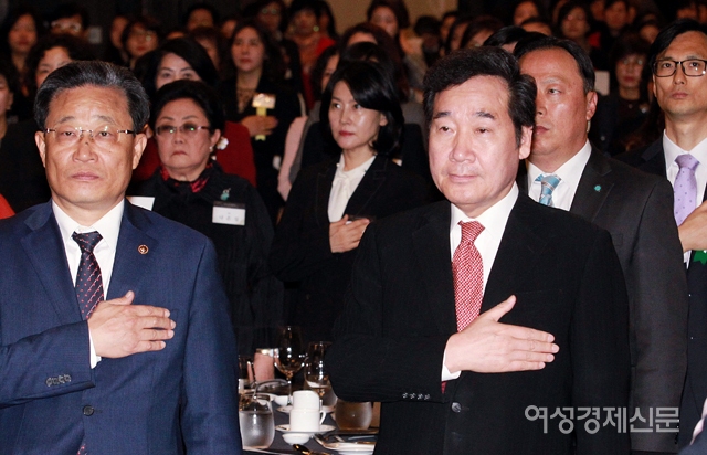 이낙연 국무총리(오른쪽)와 최수규 중기부 차관이 3일 서울 동대문구 JW메리어트호텔에서 열린 '제21회 여성경제인의 날' 기념행사에 참석해 국민의례를 하고 있다. /양문숙 기자 photoyms@seoulmedia.co.kr이낙연 총리가 3일 오전 서울 동대문구 JW메리어트호텔에서 열린 '제21회 여성경제인의 날' 기념행사에 참석해 관련 자료를 보고 있다. /양문숙 기자 photoyms@seoulmedia.co.kr이낙연 총리가 3일 서울 동대문구 JW메리어트호텔에서 열린 '제21회 여성경제인의 날' 기념행사에 참석하고 있다. /양문숙 기자 photoyms@seoulmedia.co.kr