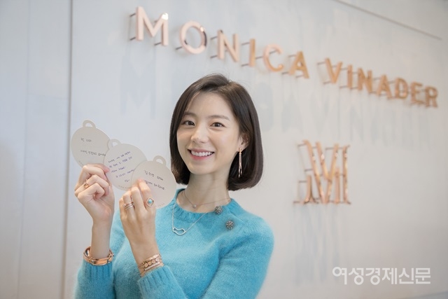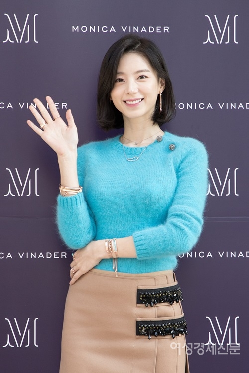 배우 박수진이 9일 강남대로에 위치한 영국 럭셔리 주얼리 브랜드 모니카비나더(Monica Vinader) 부티크매장에서 포토콜 행사를 진행하고 있다. 박수진은 브랜드 뮤즈 발탁 후 첫 공식 행사임에도 긴장한 기색 없이 자연스러운 모습과 아름다운 미소로 주위의 시선을 사로잡았다. /사진제공=모니카비나더