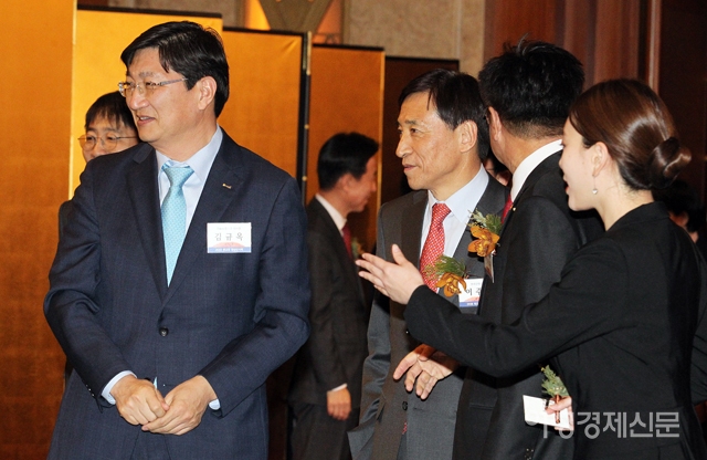 김규옥 기술보증기금 이사장(왼쪽)과 이주열 한국은행 총재가 3일 서울 중구 롯데호텔에서 열린 2018년 범금융 신년인사회에 참석하고 있다. /양문숙 기자 photoyms@seoulmedia.co.kr