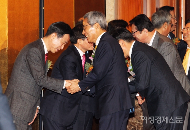 윤종규 KB금융그룹 회장이 3일 서울 중구 롯데호텔에서 열린 2018면 범금융 신년인사회에 참석하며 범금융 관계자들과 악수를 하고 있다. /양문숙 기자 photoyms@seoulmedia.co.kr윤종규 KB금융그룹 회장이 3일 서울 중구 롯데호텔에서 열린 2018면 범금융 신년인사회에 참석하고 있다. /양문숙 기자 photoyms@seoulmedia.co.kr