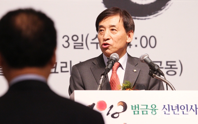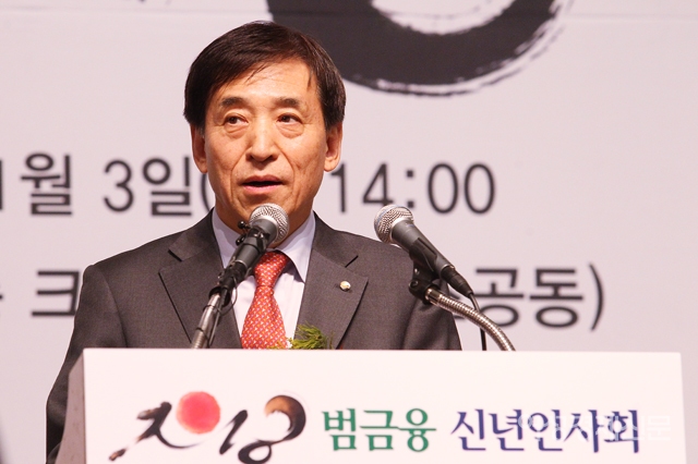 이주열 한국은행 총재가 3일 서울 중구 롯데호텔에서 열린 2018면 범금융 신년인사회에서 신년인사를 하고 있다. /양문숙 기자 photoyms@seoulmedia.co.kr이주열 한국은행 총재가 3일 서울 중구 롯데호텔에서 열린 2018면 범금융 신년인사회에서 신년인사를 하고 있다. /양문숙 기자 photoyms@seoulmedia.co.kr