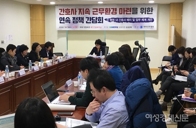 대한간호협회는 3일 김상희 더불어민주당 의원실 주최로 국회의원회관 제7간담회의실에서 '간호사 지속 근무환경 마련을 위한 연속 정책 간담회'를 개최했다. 두 번째로 열린 이번 연속 정책 간담회는 '병원 내 간호사 배치 및 업무 체계 개선'을 주제로 진행됐다.