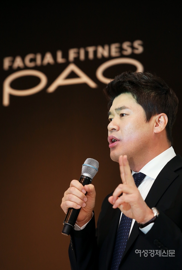 코리아테크 이동열 대표가 9일 오전 서울 신라호텔에서 열린 페이셜 피트니스 ‘파오(PAO)’ 기자간담회에서 인사말을 하고 있다. 파오는 얼굴의 표정근을 단련시킬 수 있는 얼굴 근육 운동 기구로 얼굴 근육의 두께와 단면적을 증가시켜 처짐, 주름 등 얼굴 노화 현상을 개선해준다. /양문숙 기자 photoyms@seoulmedia.co.kr