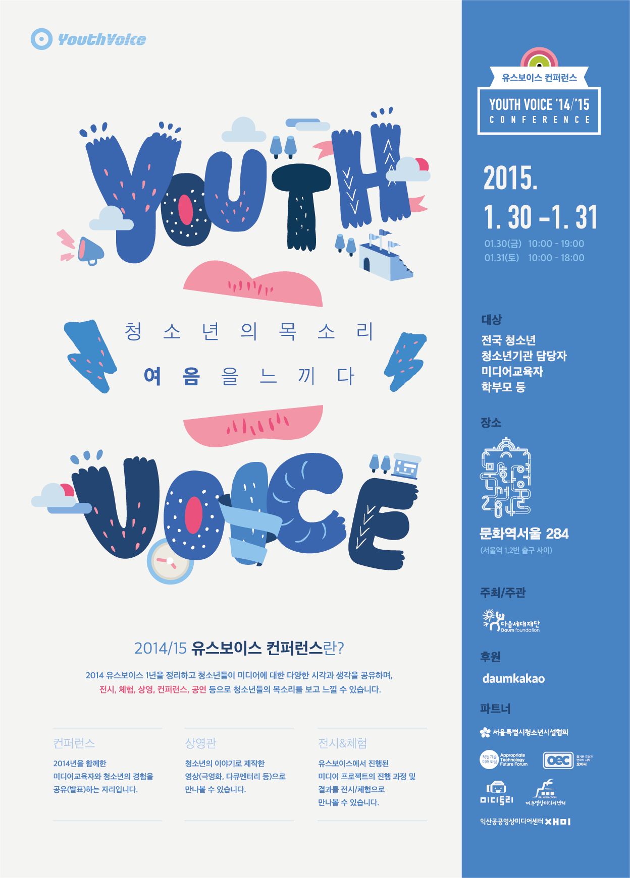 다음세대재단(대표 최세훈)은 오는 30~31일까지 총 2일간 문화역서울 284 에서 '2014-15 유스보이스 컨퍼런스'를 개최한다고 12일 밝혔다. 유스보이스는 청소년들이 다양한 목소리를 응원하며 청소년 자신의 목소리를 낼 수 있도록 지원하는 다음세대재단의 비영리 사업이다.