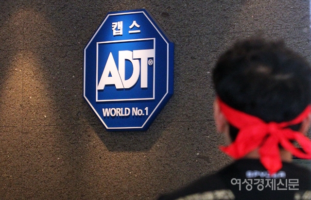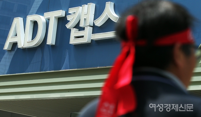 보안 전문기업 ADT캡스를 SK텔레콤과 맥쿼리인프라리얼에셋에 2조 9700억원에 매각하기로 합의한 가운데 8일 서울 강남구 봉은사로 ADT캡스 본사 앞으로 한 시민이 지나가고 있다. 이날 서비스연맹 ADT캡스노조가 '회사매각 관련 6대 요구사항 쟁취 집회'를 열었다. /양문숙 기자 yms7890@hanmail.net