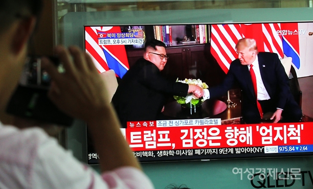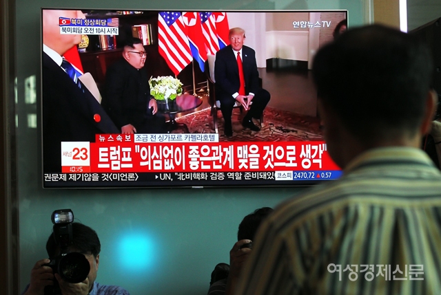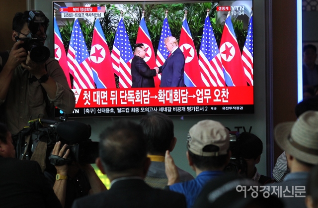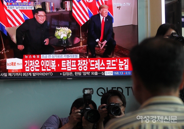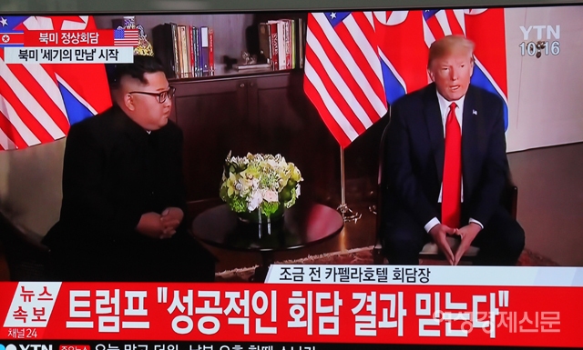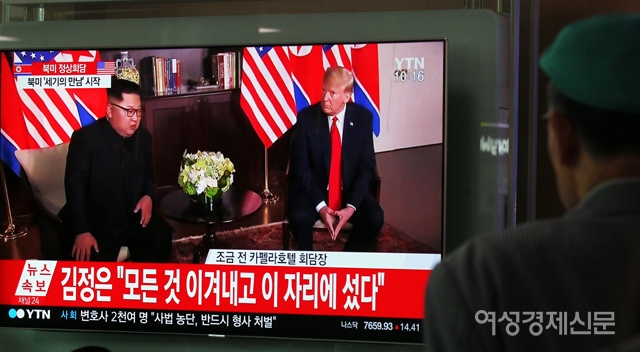 트럼프 미국 대통령과 김정은 북한 국무위원장의 북미 정상회담이 시작된 12일 오전 서울 용산구 서울역에 설치된 TV에 실시간 화면이 방송되고 있다. /양문숙 기자 yms7890@hanmail.net트럼프 미국 대통령과 김정은 북한 국무위원장의 북미 정상회담이 시작된 12일 오전 서울 용산구 서울역에서 시민들이 방송사 중계 화면을 시청하고 있다. /양문숙 기자 yms7890@hanmail.net트럼프 미국 대통령과 김정은 북한 국무위원장의 북미 정상회담이 시작된 12일 오전 서울 용산구 서울역에서 시민들이 방송사 중계 화면을 시청하고 있다. /양문숙 기자 yms7890@hanmail.net트럼프 미국 대통령과 김정은 북한 국무위원장의 북미 정상회담이 시작된 12일 오전 서울 용산구 서울역에서 시민들이 방송사 중계 화면을 시청하고 있다. /양문숙 기자 yms7890@hanmail.net트럼프 미국 대통령과 김정은 북한 국무위원장의 북미 정상회담이 시작된 12일 오전 서울 용산구 서울역에서 시민들이 방송사 중계 화면을 시청하고 있다. /양문숙 기자 yms7890@hanmail.net트럼프 미국 대통령과 김정은 북한 국무위원장의 북미 정상회담이 시작된 12일 오전 서울 용산구 서울역에서 시민들이 방송사 중계 화면을 시청하고 있다. /양문숙 기자 yms7890@hanmail.net