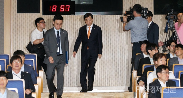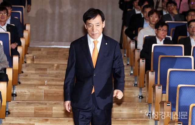 이주열 한국은행 총재가 12일 오전 서울 중구 부영태평빌딩 컨벤션홀에서 열린 '한국은행 창립 제68주년 기념식'에 입장하고 있다. /양문숙 기자 yms7890@hanmail.net이주열 한국은행 총재가 12일 오전 서울 중구 부영태평빌딩 컨벤션홀에서 열린 '한국은행 창립 제68주년 기념식'에 입장하고 있다. /양문숙 기자 yms7890@hanmail.net