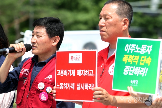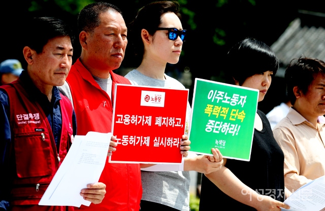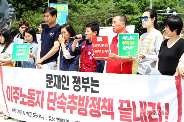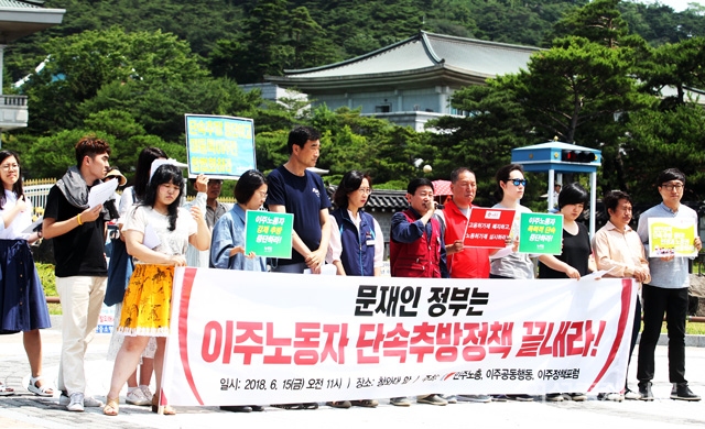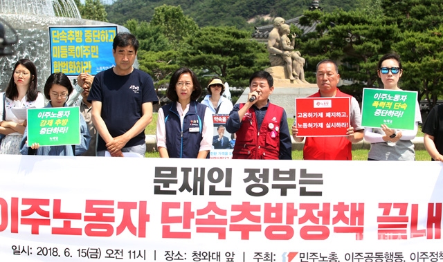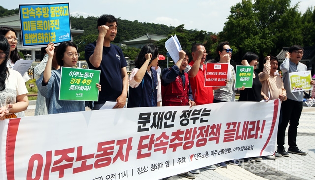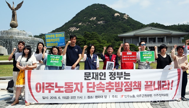 민주노총, 이주공동행동 등 시민사회단체 회원들이 15일 오전 청와대 분수대 앞에서 '이주노동자 단속추방 규탄 기자회견'을 열고 있다. /양문숙 기자 yms7890@hanmail.net민주노총, 이주공동행동 등 시민사회단체 회원들이 15일 오전 청와대 분수대 앞에서 '이주노동자 단속추방 규탄 기자회견'을 열고 있다. /양문숙 기자 yms7890@hanmail.net민주노총, 이주공동행동 등 시민사회단체 회원들이 15일 오전 청와대 분수대 앞에서 '이주노동자 단속추방 규탄 기자회견'을 열고 있다. /양문숙 기자 yms7890@hanmail.net민주노총, 이주공동행동 등 시민사회단체 회원들이 15일 오전 청와대 분수대 앞에서 '이주노동자 단속추방 규탄 기자회견'을 열고 있다. /양문숙 기자 yms7890@hanmail.net민주노총, 이주공동행동 등 시민사회단체 회원들이 15일 오전 청와대 분수대 앞에서 '이주노동자 단속추방 규탄 기자회견'을 열고 있다. /양문숙 기자 yms7890@hanmail.net민주노총과 이주공동행동 등 시민사회단체 회원들이 15일 오전 청와대 앞에서 열린 '이주노동자 단속추방 규탄 기자회견'에서 구호를 외치고 있다. /양문숙 기자 yms7890@hanmail.net민주노총과 이주공동행동 등 시민사회단체 회원들이 15일 오전 청와대 앞에서 열린 '이주노동자 단속추방 규탄 기자회견'에서 구호를 외치고 있다. /양문숙 기자 yms7890@hanmail.net
