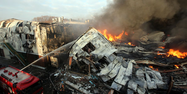 18일 오전 6시 38분께 충남 천안시 서북구 업성동에 있는 휴대용 부탄가스 '썬연료' 제조업체인 태양산업에서 불이나 공장 건물 8개동을 태우고 진화됐다.