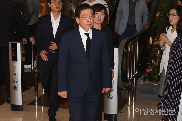 박원순 서울시장이 23일 오후 서울 서대문구 신촌 세브란스 병원 장례식장에 마련된 고 노회찬 정의당 원내대표의 빈소에 들어서고 있다. /양문숙 기자 yms7890@hanmail.net