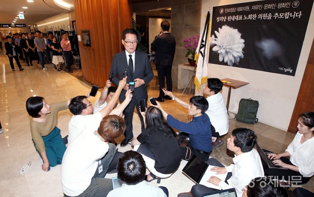 24일 오후 서울 서대문구 연세대 세브란스병원 장례식장에 마련된 고 노회찬 정의당 원내대표의 빈소에 박지원 민주평화당의원이 조문후 소회를 밝히고 있다. /양문숙 기자 yms7890@hanmail.net24일 오후 서울 서대문구 연세대 세브란스병원 장례식장에 마련된 고 노회찬 정의당 원내대표의 빈소에 박지원 민주평화당의원이 조문후 소회를 밝히고 있다. /양문숙 기자 yms7890@hanmail.net