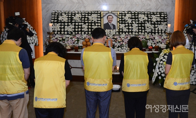 연세대학교의료원 노동조합원들이 24일 서울 서대문구 신촌세브란스병원 장례식장에 마련된 고 노회찬 정의당 원내대표의 빈소를 찾아 조문하고 있다./사진공동취재단 SCRAP SHARE 관련기사 오열하는 조국 민정수석 팩트경제신문 womaneconomy@seoulmedia.co.kr 다른기사 보기 저작권자 © 여성경제신문 무단전재 및 재배포 금지 당신만 안 본 뉴스 건보공단, 배상책임보험 트집 잡다 '역풍'···환수금 대신 망신살 챙겼다 56조 화이자 '승자의 저주'···ADC 2년 '옥석', 리가켐바이오 '순항' 박헌정 더봄 올가을 단풍은 대체 언제 드는 거야? 홍미옥 더봄 요즘 핫해!···달콤함의 최강자 무화과의 매력 김성재 칼럼 마이클 버리의 'AI 거품설' 타당한가 기자수첩 론스타 사건, '시작은 DJ, 끝은 한동훈'이란 유치한 서사 '기대감' 끝났다···3분기 제약·바이오社 성과 '피라미드' 건보공단, 배상책임보험 트집 잡다 '역풍'···환수금 대신 망신살 챙겼다 개의 댓글 회원로그인 작성자 비밀번호 댓글 내용입력 댓글 정렬 BEST댓글 BEST 댓글 답글과 추천수를 합산하여 자동으로 노출됩니다. 닫기 더보기 댓글삭제 삭제한 댓글은 다시 복구할 수 없습니다. 그래도 삭제하시겠습니까? 비밀번호 닫기 댓글수정 댓글 수정은 작성 후 1분내에만 가능합니다. 본문 / 400 비밀번호 닫기 내 댓글 모음 닫기 주요기사 최초 '유엔 여성 사무총장' 나오나···차기 후보 권장 명시 GC녹십자, 'mRNA-LNP 플랫폼' 성과 발표···"혁신 치료제 개발 지속" KB금융, 데이터·AI 전략 총점검···양종희 "체감할 수 있는 혁신해야" 비만약 ‘위고비’도 못 넘은 벽···알츠하이머 임상 줄줄이 ‘좌절’ "누가 발행?" 답 없고 "준비금은?" 말 없는 하나금융 스테이블코인 전략 "죽고 다치는 급식노동자 많아"···국회 앞 '법 개선 촉구' 집회