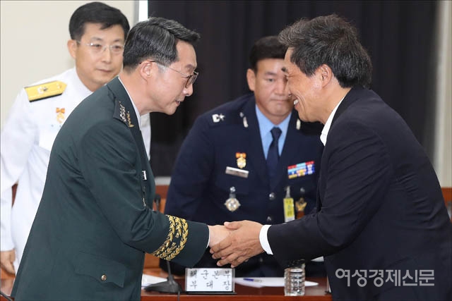 이학재 정보위원장과 이석구 기무사령관이 27일 오후 국회에서 열린 국회 정보위원회 전체회의에서 악수를 하고 있다. /사진공동취재단 SCRAP SHARE 팩트경제신문 womaneconomy@seoulmedia.co.kr 다른기사 보기 저작권자 © 여성경제신문 무단전재 및 재배포 금지 당신만 안 본 뉴스 건보공단, 배상책임보험 트집 잡다 '역풍'···환수금 대신 망신살 챙겼다 56조 화이자 '승자의 저주'···ADC 2년 '옥석', 리가켐바이오 '순항' 박헌정 더봄 올가을 단풍은 대체 언제 드는 거야? 홍미옥 더봄 요즘 핫해!···달콤함의 최강자 무화과의 매력 김성재 칼럼 마이클 버리의 'AI 거품설' 타당한가 기자수첩 론스타 사건, '시작은 DJ, 끝은 한동훈'이란 유치한 서사 '기대감' 끝났다···3분기 제약·바이오社 성과 '피라미드' 건보공단, 배상책임보험 트집 잡다 '역풍'···환수금 대신 망신살 챙겼다 개의 댓글 회원로그인 작성자 비밀번호 댓글 내용입력 댓글 정렬 BEST댓글 BEST 댓글 답글과 추천수를 합산하여 자동으로 노출됩니다. 닫기 더보기 댓글삭제 삭제한 댓글은 다시 복구할 수 없습니다. 그래도 삭제하시겠습니까? 비밀번호 닫기 댓글수정 댓글 수정은 작성 후 1분내에만 가능합니다. 본문 / 400 비밀번호 닫기 내 댓글 모음 닫기 주요기사 최초 '유엔 여성 사무총장' 나오나···차기 후보 권장 명시 GC녹십자, 'mRNA-LNP 플랫폼' 성과 발표···"혁신 치료제 개발 지속" KB금융, 데이터·AI 전략 총점검···양종희 "체감할 수 있는 혁신해야" 비만약 ‘위고비’도 못 넘은 벽···알츠하이머 임상 줄줄이 ‘좌절’ "누가 발행?" 답 없고 "준비금은?" 말 없는 하나금융 스테이블코인 전략 "죽고 다치는 급식노동자 많아"···국회 앞 '법 개선 촉구' 집회