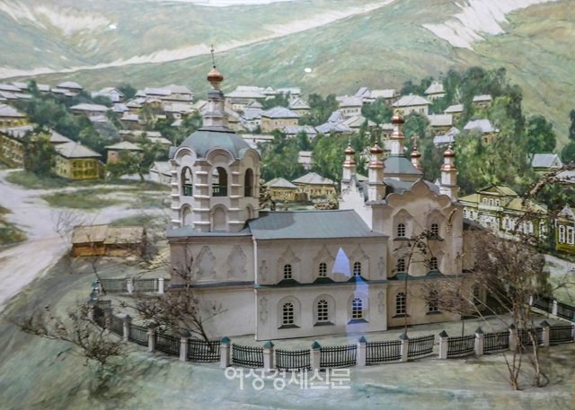 이 박물관으로 들어서면 첫 번째 전시실에 처음 보이는 것이 오른쪽 벽에 있는 마리야의 전신 그림이다. 1862년에 찍은 마리야의 전신 옆면 사진을 토대로 바샤리나라는 화가가 1996년에 그린 것이다.