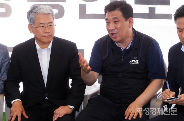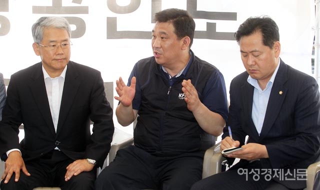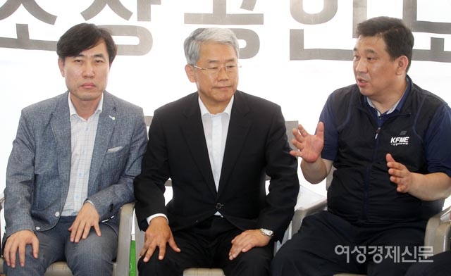 김동철 바른미래당 비상대책위원장이 10일 서울 세종로 최저임금 제도개선 촉구 소상공인 농성장을 방문해 최승재 소상공인연합회 회장(오른쪽)과 대화를 나누고 있다. /양문숙 기자 yms7890@hanmail.net김동철 바른미래당 비상대책위원장과 김관영 원내대표가 10일 서울 세종로 최저임금 제도개선 촉구 소상공인 농성장을 방문해 최승재 소상공인연합회 회장(가운데)과 대화를 나누고 있다. /양문숙 기자 yms7890@hanmail.net김동철 바른미래당 비상대책위원장과 하태경 의원이 10일 서울 세종로 최저임금 제도개선 촉구 소상공인 농성장을 방문해 최승재 소상공인연합회 회장과 대화를 나누고 있다. /양문숙 기자 yms7890@hanmail.net