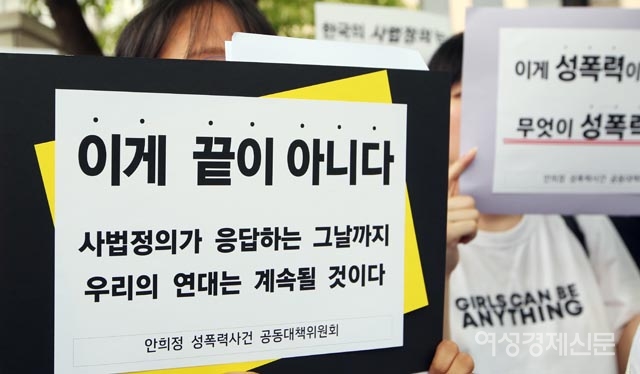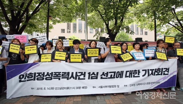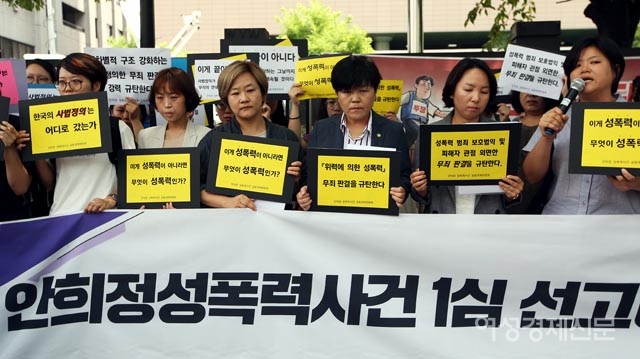 14일 오전 서울 마포구 서부지방법원 앞에서 열린 '안희정 성폭력 사건 1심 무죄 선고에 대한 여성단체 기자회견'에서 안희정 성폭력사건 공동대책위원회 회원들이 손팻말을 들고 규탄하고 있다. /양문숙 기자 yms7890@hanmail.net14일 오전 서울 마포구 서부지방법원 앞에서 열린 '안희정 성폭력 사건 1심 무죄 선고에 대한 여성단체 기자회견'에서 안희정 성폭력사건 공동대책위원회 회원들이 손팻말을 들고 규탄하고 있다. /양문숙 기자 yms7890@hanmail.net14일 오전 서울 마포구 서부지방법원 앞에서 열린 '안희정 성폭력 사건 1심 무죄 선고에 대한 여성단체 기자회견'에서 안희정 성폭력사건 공동대책위원회 회원들이 손팻말을 들고 규탄하고 있다. /양문숙 기자 yms7890@hanmail.net14일 오전 서울 마포구 서부지방법원 앞에서 열린 '안희정 성폭력 사건 1심 무죄 선고에 대한 여성단체 기자회견'에서 김혜정 한국성폭력상담소 부소장이 규탄 발언을 하고 있다. /양문숙 기자 yms7890@hanmail.net14일 오전 서울 마포구 서부지방법원 앞에서 열린 '안희정 성폭력 사건 1심 무죄 선고에 대한 여성단체 기자회견'에서 안희정 성폭력사건 공동대책위원회 회원들이 손팻말을 들고 규탄하고 있다. /양문숙 기자 yms7890@hanmail.net14일 오전 서울 마포구 서부지방법원 앞에서 열린 '안희정 성폭력 사건 1심 무죄 선고에 대한 여성단체 기자회견'에서 안희정 성폭력사건 공동대책위원회 회원들이 손팻말을 들고 규탄하고 있다. /양문숙 기자 yms7890@hanmail.net14일 오전 서울 마포구 서부지방법원 앞에서 열린 '안희정 성폭력 사건 1심 무죄 선고에 대한 여성단체 기자회견'에서 안희정 성폭력사건 공동대책위원회 회원들이 손팻말을 들고 규탄하고 있다. /양문숙 기자 yms7890@hanmail.net14일 오전 서울 마포구 서부지방법원 앞에서 열린 '안희정 성폭력 사건 1심 무죄 선고에 대한 여성단체 기자회견'에서 김혜정 한국성폭력상담소 부소장이 규탄 발언을 하고 있다. /양문숙 기자 yms7890@hanmail.net14일 오전 서울 마포구 서부지방법원 앞에서 열린 '안희정 성폭력 사건 1심 무죄 선고에 대한 여성단체 기자회견'에서 안희정 성폭력사건 공동대책위원회 회원들이 손팻말을 들고 규탄하고 있다. /양문숙 기자 yms7890@hanmail.net14일 오전 서울 마포구 서부지방법원 앞에서 열린 '안희정 성폭력 사건 1심 무죄 선고에 대한 여성단체 기자회견'에서 안희정 성폭력사건 공동대책위원회 회원들이 손팻말을 들고 규탄하고 있다. /양문숙 기자 yms7890@hanmail.net14일 오전 서울 마포구 서부지방법원 앞에서 열린 '안희정 성폭력 사건 1심 무죄 선고에 대한 여성단체 기자회견'에서 안희정 성폭력사건 공동대책위원회 회원들이 손팻말을 들고 규탄하고 있다. /양문숙 기자 yms7890@hanmail.net