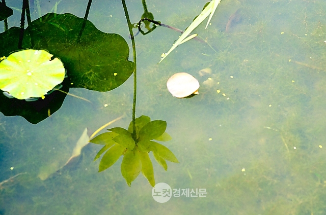 ▲ 7월 9일 촬영한 연꽃 반영 이미지충북 진천군 진천읍 연곡리 보탑사 주변 논에는 연꽃이 만발해 이 곳을 찾는 이들의 눈길을사로잡았는데, 올 해는 날씨 때문인지 개화상태가 그다지 좋지 못하다.논 물에 비친 연꽃 한송이를 담아 보았다.