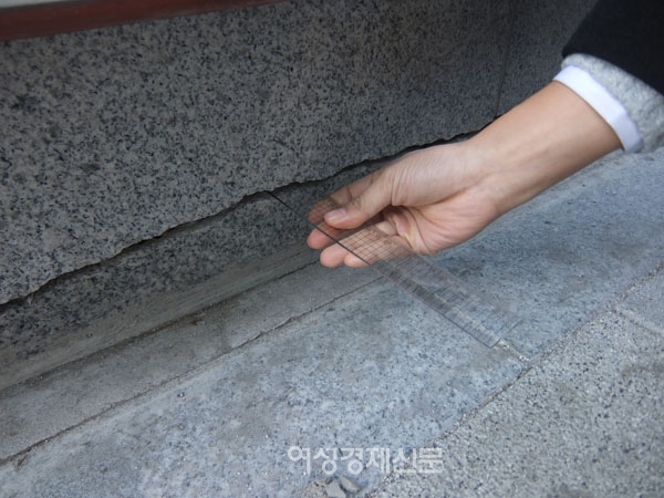 깊이를 봤을 때 대리석이라는 소재 특성상 균열이 상당 부분 진행됐다는 것을 의미한다. 10번 출구 앞 인도이기 때문이기 때문에 육안으로도 확인이 가능하다.