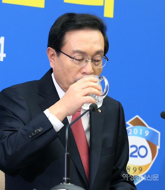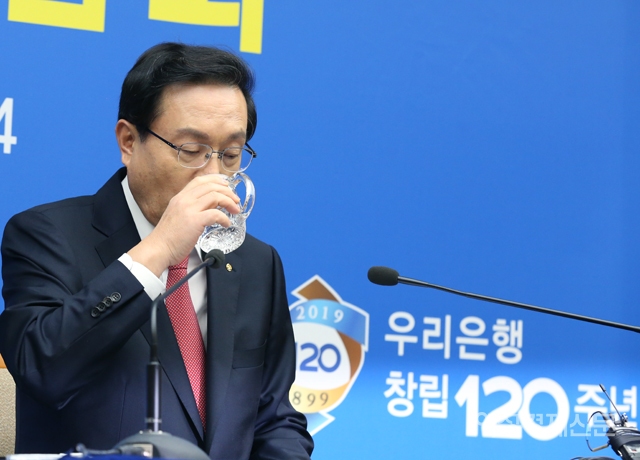 손태승 우리금융그룹 회장 겸 우리은행장이 14일 서울 중구 우리은행 본점에서 열린 기자간담회에서 물을 마시고 있다. /문인영 기자 photoiym@gmail.com손태승 우리금융그룹 회장 겸 우리은행장이 14일 서울 중구 우리은행 본점에서 열린 기자간담회에서 물을 마시고 있다. /문인영 기자 photoiym@gmail.com손태승 우리금융그룹 회장 겸 우리은행장이 14일 서울 중구 우리은행 본점에서 열린 기자간담회에서 물을 마시고 있다. /문인영 기자 photoiym@gmail.com