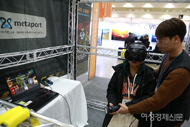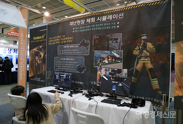 17일 서울 강남구 코엑스에서 열린 '제16회 대한민국 교육박람회'에서 관람객들이 재난현장 시뮬레이션 체험을 하고 있다. AI, 코딩, 로봇, VR 등 에듀테크가 결합된 교육 프로그램, 기자재, 교구 등 미래 교육산업을 만날 수 있는 이번 박람회는 18일까지 개최된다. /문인영 기자 photoiym@gmail.com