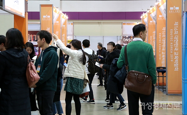 17일 서울 강남구 코엑스에서 열린 '제16회 대한민국 교육박람회'에서 관람객들이 부스를 둘러보고 있다. AI, 코딩, 로봇, VR 등 에듀테크가 결합된 교육 프로그램, 기자재, 교구 등 미래 교육산업을 만날 수 있는 이번 박람회는 18일까지 개최된다. /문인영 기자 photoiym@gmail.com
