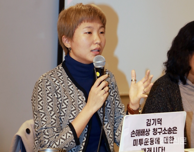 정슬아 한국여성민우회 미디어운동본부 사무국장이 7일 서울 마포구 한국성폭력상담소에서 열린 '영화감독 김기덕 3억 손해배상 청구소송 규탄 기자회견'에서 발언하고 있다. / 문인영 기자 photoiym@gmail.com정슬아 한국여성민우회 미디어운동본부 사무국장이 7일 서울 마포구 한국성폭력상담소에서 열린 '영화감독 김기덕 3억 손해배상 청구소송 규탄 기자회견'에서 발언하고 있다. / 문인영 기자 photoiym@gmail.com강혜란 한국여성민우회 공동대표가 7일 서울 마포구 한국성폭력상담소에서 열린 '영화감독 김기덕 3억 손해배상 청구소송 규탄 기자회견'에서 발언하고 있다. / 문인영 기자 photoiym@gmail.com정슬아 한국여성민우회 미디어운동본부 사무국장이 7일 서울 마포구 한국성폭력상담소에서 열린 '영화감독 김기덕 3억 손해배상 청구소송 규탄 기자회견'에서 발언하고 있다. / 문인영 기자 photoiym@gmail.com박건식 MBC 'PD수첩' PD가 7일 서울 마포구 한국성폭력상담소에서 열린 '영화감독 김기덕 3억 손해배상 청구소송 규탄 기자회견'에서 발언하고 있다. / 문인영 기자 photoiym@gmail.com백미순 한국여성단체연합 상임대표가 7일 서울 마포구 한국성폭력상담소에서 열린 '영화감독 김기덕 3억 손해배상 청구소송 규탄 기자회견'에서 발언하고 있다. / 문인영 기자 photoiym@gmail.com이상길 전국영화산업노동조합 수석부위원장이 7일 서울 마포구 한국성폭력상담소에서 열린 '영화감독 김기덕 3억 손해배상 청구소송 규탄 기자회견'에서 발언하고 있다. / 문인영 기자 photoiym@gmail.com최란 한국성폭력상담소 상담팀장이 7일 서울 마포구 한국성폭력상담소에서 열린 '영화감독 김기덕 3억 손해배상 청구소송 규탄 기자회견'에서 발언하고 있다. / 문인영 기자 photoiym@gmail.com백미순 한국여성단체연합 상임대표가 7일 서울 마포구 한국성폭력상담소에서 열린 '영화감독 김기덕 3억 손해배상 청구소송 규탄 기자회견'에서 발언하고 있다. / 문인영 기자 photoiym@gmail.com7일 서울 마포구 한국성폭력상담소에서 열린 '영화감독 김기덕 3억 손해배상 청구소송 규탄 기자회견'에서 정슬아 한국여성민우회 미디어운동본부 사무국장(왼쪽 아랫줄부터), 강혜란 한국여성민우회 공동대표, 최란 한국성폭력상담소 상담팀장, 남순아 한국독립영화협회 성평등위원, 이상길 전국영화산업노동조합 수석부위원장, 박건식 MBC 'PD수첩' PD, 백미순 한국여성단체연합 상임대표를 비롯한 관계자들이 구호를 외치고 있다. / 문인영 기자 photoiym@gmail.com