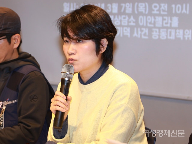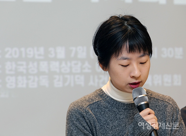 정슬아 한국여성민우회 미디어운동본부 사무국장이 7일 서울 마포구 한국성폭력상담소에서 열린 '영화감독 김기덕 3억 손해배상 청구소송 규탄 기자회견'에서 발언하고 있다. / 문인영 기자 photoiym@gmail.com정슬아 한국여성민우회 미디어운동본부 사무국장이 7일 서울 마포구 한국성폭력상담소에서 열린 '영화감독 김기덕 3억 손해배상 청구소송 규탄 기자회견'에서 발언하고 있다. / 문인영 기자 photoiym@gmail.com강혜란 한국여성민우회 공동대표가 7일 서울 마포구 한국성폭력상담소에서 열린 '영화감독 김기덕 3억 손해배상 청구소송 규탄 기자회견'에서 발언하고 있다. / 문인영 기자 photoiym@gmail.com정슬아 한국여성민우회 미디어운동본부 사무국장이 7일 서울 마포구 한국성폭력상담소에서 열린 '영화감독 김기덕 3억 손해배상 청구소송 규탄 기자회견'에서 발언하고 있다. / 문인영 기자 photoiym@gmail.com박건식 MBC 'PD수첩' PD가 7일 서울 마포구 한국성폭력상담소에서 열린 '영화감독 김기덕 3억 손해배상 청구소송 규탄 기자회견'에서 발언하고 있다. / 문인영 기자 photoiym@gmail.com백미순 한국여성단체연합 상임대표가 7일 서울 마포구 한국성폭력상담소에서 열린 '영화감독 김기덕 3억 손해배상 청구소송 규탄 기자회견'에서 발언하고 있다. / 문인영 기자 photoiym@gmail.com이상길 전국영화산업노동조합 수석부위원장이 7일 서울 마포구 한국성폭력상담소에서 열린 '영화감독 김기덕 3억 손해배상 청구소송 규탄 기자회견'에서 발언하고 있다. / 문인영 기자 photoiym@gmail.com최란 한국성폭력상담소 상담팀장이 7일 서울 마포구 한국성폭력상담소에서 열린 '영화감독 김기덕 3억 손해배상 청구소송 규탄 기자회견'에서 발언하고 있다. / 문인영 기자 photoiym@gmail.com백미순 한국여성단체연합 상임대표가 7일 서울 마포구 한국성폭력상담소에서 열린 '영화감독 김기덕 3억 손해배상 청구소송 규탄 기자회견'에서 발언하고 있다. / 문인영 기자 photoiym@gmail.com7일 서울 마포구 한국성폭력상담소에서 열린 '영화감독 김기덕 3억 손해배상 청구소송 규탄 기자회견'에서 정슬아 한국여성민우회 미디어운동본부 사무국장(왼쪽 아랫줄부터), 강혜란 한국여성민우회 공동대표, 최란 한국성폭력상담소 상담팀장, 남순아 한국독립영화협회 성평등위원, 이상길 전국영화산업노동조합 수석부위원장, 박건식 MBC 'PD수첩' PD, 백미순 한국여성단체연합 상임대표를 비롯한 관계자들이 구호를 외치고 있다. / 문인영 기자 photoiym@gmail.com SCRAP SHARE 문인영 기자 photoiym@gmail.com 다른기사 보기 저작권자 © 여성경제신문 무단전재 및 재배포 금지 당신만 안 본 뉴스 건보공단, 배상책임보험 트집 잡다 '역풍'···환수금 대신 망신살 챙겼다 56조 화이자 '승자의 저주'···ADC 2년 '옥석', 리가켐바이오 '순항' 박헌정 더봄 올가을 단풍은 대체 언제 드는 거야? 홍미옥 더봄 요즘 핫해!···달콤함의 최강자 무화과의 매력 김성재 칼럼 마이클 버리의 'AI 거품설' 타당한가 기자수첩 론스타 사건, '시작은 DJ, 끝은 한동훈'이란 유치한 서사 '기대감' 끝났다···3분기 제약·바이오社 성과 '피라미드' 건보공단, 배상책임보험 트집 잡다 '역풍'···환수금 대신 망신살 챙겼다 개의 댓글 회원로그인 작성자 비밀번호 댓글 내용입력 댓글 정렬 BEST댓글 BEST 댓글 답글과 추천수를 합산하여 자동으로 노출됩니다. 닫기 더보기 댓글삭제 삭제한 댓글은 다시 복구할 수 없습니다. 그래도 삭제하시겠습니까? 비밀번호 닫기 댓글수정 댓글 수정은 작성 후 1분내에만 가능합니다. 본문 / 400 비밀번호 닫기 내 댓글 모음 닫기 주요기사 최초 '유엔 여성 사무총장' 나오나···차기 후보 권장 명시 GC녹십자, 'mRNA-LNP 플랫폼' 성과 발표···"혁신 치료제 개발 지속" KB금융, 데이터·AI 전략 총점검···양종희 "체감할 수 있는 혁신해야" 비만약 ‘위고비’도 못 넘은 벽···알츠하이머 임상 줄줄이 ‘좌절’ "누가 발행?" 답 없고 "준비금은?" 말 없는 하나금융 스테이블코인 전략 "죽고 다치는 급식노동자 많아"···국회 앞 '법 개선 촉구' 집회