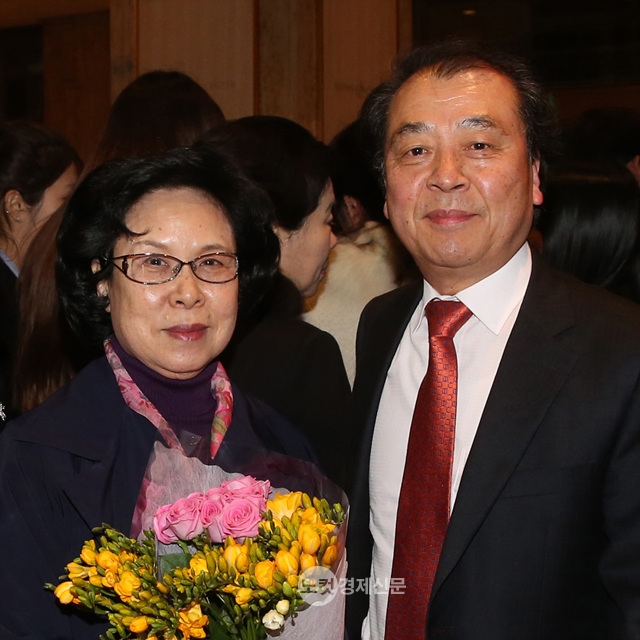 <2013년 3월 19일 세종문화회관에서 열린 '신춘 가곡의 향연'이 끝난 후 로비에서 만난 송길자 시인(왼쪽)과 임긍수 작곡가>