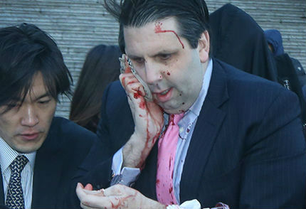 사건 현장에 있던 한 참석자는 "리퍼트 대사가 첫술을 뜨자마자 공격당했다"고 말했다.