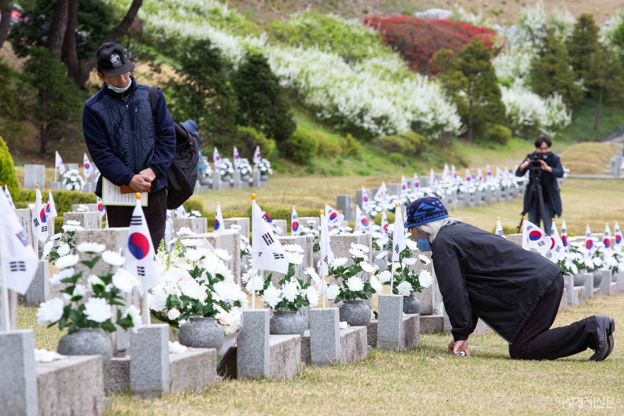 국립 4·19 민주묘지를 찾은 참배객 / 이맹호 기자 국립 4·19 민주묘지를 찾은 참배객 / 이맹호 기자 국립 4·19 민주묘지를 찾은 참배객 / 이맹호 기자 제60주년 4·19 혁명 기념식이 열린 지난 19일 오전 서울 강북구 국립 4·19 민주묘지에서 참배객들이 꽃을 헌화하고 있다.
