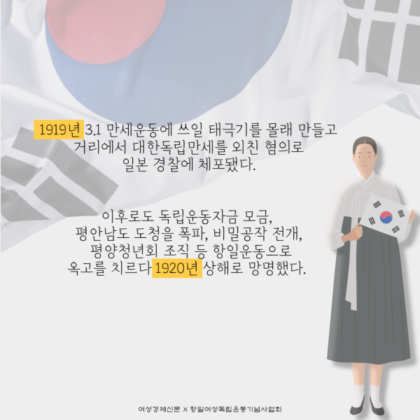 여성경제신문은 광복 75주년을 맞아 (사)항일여성독립운동기념사업회와 공동으로 또렷이 기억해야 할 항일여성독립운동가 75분을 1차로 8월부터 10월까지 소개한다.