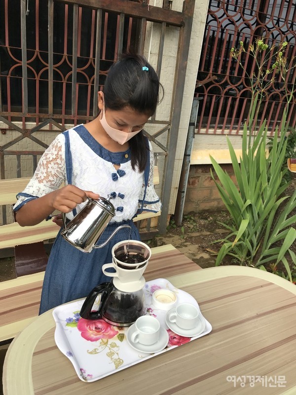 이 소녀는 어린 시절부터 학업을 중단하고, 집안일과 동네일을 하며 자랐습니다. 먼 마을의 식당에서 일하기도 했습니다. 우리는 이 소녀가 일하는 곳에 가끔 찾아가기도 했습니다. 가족 간에 신앙이 다르면 얼마나 힘들까요. 그러다 성년이 되며 가족들을 설득해 이곳 카페로 오게 되었습니다.