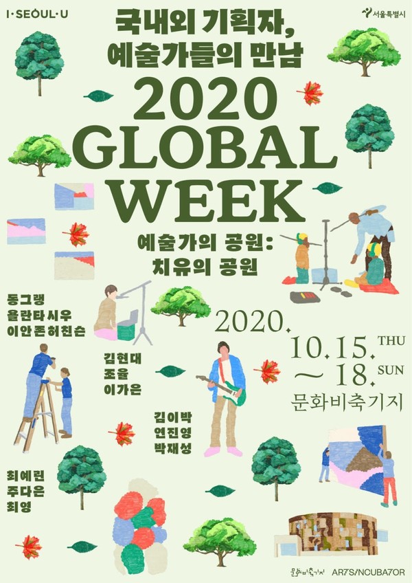 남길순 서부공원녹지사업소장은 “코로나19로 인해 문화예술 활동이 위축되고 있는데, ‘2020 글로벌 위크’를 통해 문화비축기지가 문화예술계와 시민 모두에게 예술을 통한 치유의 기회를 제공하는 공원의 역할을 담당할 수 있기를 기대한다”고 전했다.