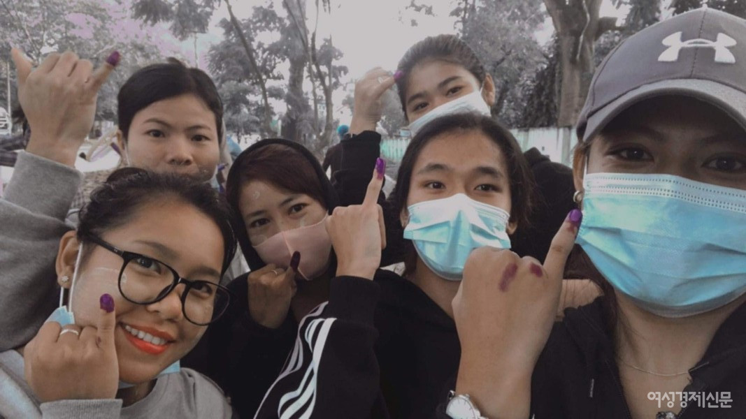 오늘 조간신문들을 넘기며 어제의 선거 모습을 담은 사진들을 봅니다. 보라색 물감의 새끼손가락의 물결. 빨강색 티셔츠의 물결. 그리고 한 기사가 눈에 띕니다. 따웅지에 사는 25살의 한 임산부 이야기입니다. 그녀는 사전투표도 가능한데 직접 당일 하려고 아침 일찍 투표소에 왔다가 피를 흘리며 응급차에 실려갔습니다. 투표라곤 난생 처음 해보는 청년들의 인터뷰도 실려 있습니다. 지금 미얀마 공영방송에는 아웅산 수지 국가고문이 막 연설을 하고 있습니다. 승리가 확정된 순간입니다.