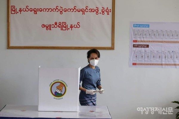 여당인 NLD 전체 의석 과반수 넘겨···아웅산 수지 국가 고문 연설로 승리 확정