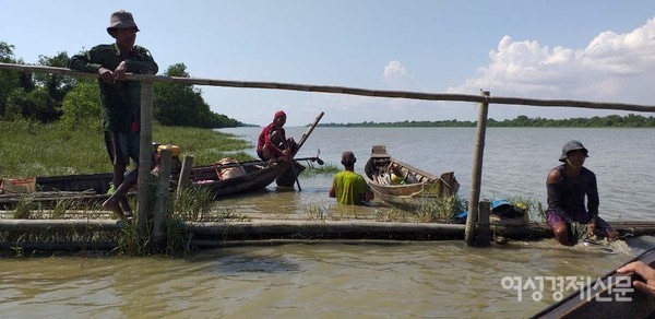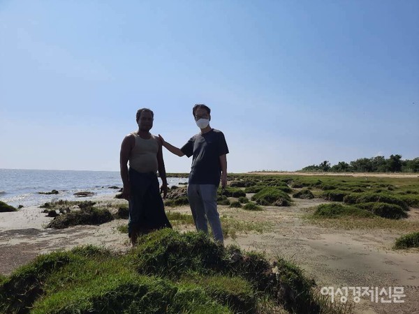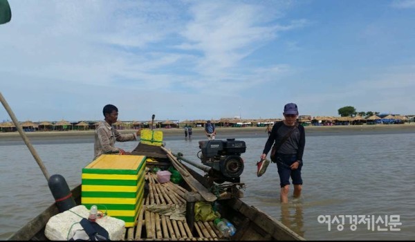 오늘 양곤에서 가장 가까운 바다 레코콘(Letkhokkon)으로 갑니다. 양곤항구 건너편 달라지역을 지나 바다가 있습니다. 양곤항 보타타웅 부두에 페리가 다니지 않아 차로 빙 돌아 둔테운하 다리를 건넙니다. 시내에서 2시간 30분이나 걸려 레코콘 바닷가에 왔습니다. 우정의 다리가 있다면 금새 올 거리를 65km나 돌아서 왔습니다. 통행제재조치로 텅빈 해변. 상가도 문을 닫고 있습니다. 주말엔 1천여 양곤시민들이 찾는다고 합니다. 14km 되는 해변으로는 진입이 안 된다고 해 어촌에서 보트를 하나 빌립니다. 인근에 맹글로브 숲이 있는 제법 큰 섬이 있습니다. 그 섬을 둘러보기로 합니다.