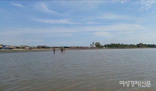 이 해변은 양곤과 가장 가깝고 풍광도 좋습니다. 당일치기 여행으로도 적합하지만 물빛이 좀 문제입니다. 몬순기후로 비가 오래 오고, 강들과 합류하며 토사가 쌓이면서 바다는 온통 잿빛이나 황톳빛을 띠고 있습니다. 그러나 풍성한 토양에서 자란 열대과일, 해산물, 코코넛 밀크를 먹고 마시며 일광욕을 즐길 수 있습니다. 큰 섬에는 맹글로브 숲이 우거져 있고 주민들은 그 숲에서 게를 잡고 있습니다. 섬이 보이는 해변에 정부가 운영하는 방갈로 호텔이 하나 있습니다. 넓은 부지에 조성된 리조트입니다. 지금 영업이 중지된 채 황폐한 모습으로 남아 있습니다. 이 나라 정부는 2012년부터 이곳을 개발하기 위해 애를 썼지만 중단되었습니다. 현재 외국기업이 투자하길 원하고 있고, 우정의 다리가 생기면 한국기업이 맡길 원합니다.