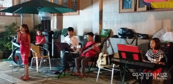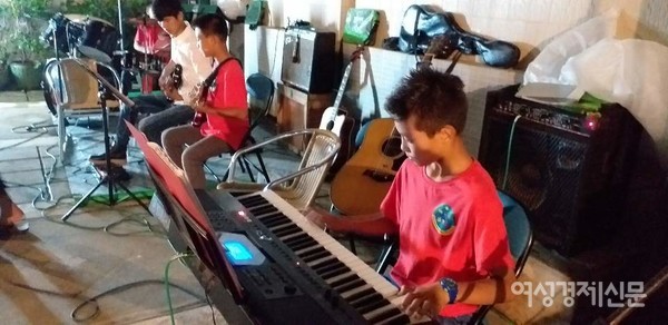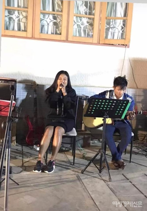 이 공동체 청소년 보컬밴드가 매달 공연을 합니다. 지금은 코로나로 쉬고 있지만 매달 마지막 주 토요일 저녁 열립니다. 별이 쏟아지는 밤, 소년소녀들의 이중창, 합창이 울려퍼집니다. 청소년을 위한 작은 음악회입니다. 한국계 호텔 쉐에인난(Shwe Eain Nan) 호텔 안마당에서 열립니다. 밴드 연주자들과 싱어들은 이날을 위해 많은 연습을 해야 합니다. 아직 전문적인 음악지도 선생님이 없기 때문입니다. 피아노, 바이올린도 배우고싶지만 악기도 없고, 선생님도 없습니다. 이 나라 초중고 교과과정엔 음악, 미술 등 예체능 분야가 없습니다. 혼자서 공부해야 합니다. 게다가 악보도 서양악보가 아니라 동양악보를 지금도 쓰고 있습니다. 숫자와 점, 곡선으로 표기된 악보입니다. 최근에 이 나라 정부에서 예체능 분야 교재를 만든다고 합니다.