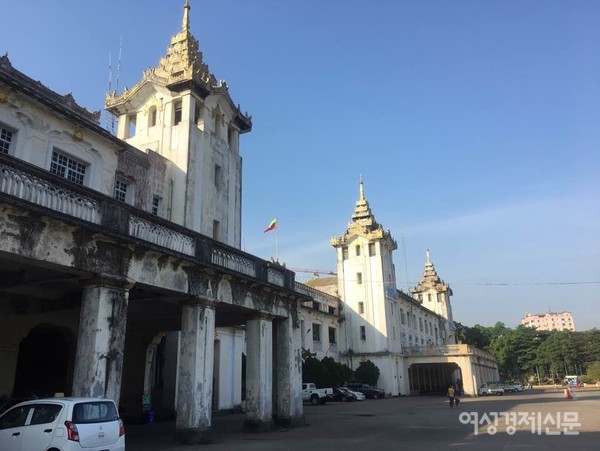 중앙역 뒤편으로 대형 마켓 등 양곤 주요 건물들 포진