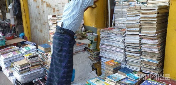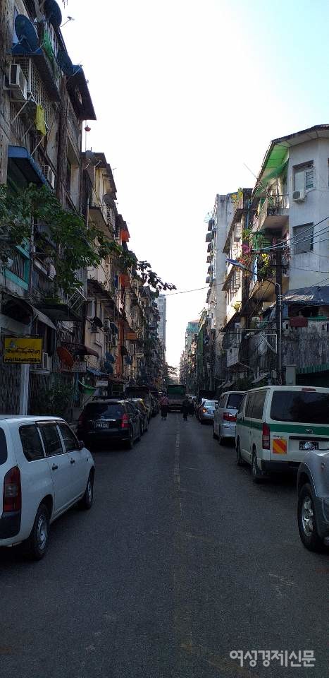 사거리 모퉁이에 5성급 호텔 샹글리라가 있습니다. 호텔에서 바라보면 술레 파야가 보입니다. 이 탑을 기준으로 옛 영국인들은 양곤을 구획으로 나누었습니다. 9마일 지역이라고 하면 이 탑으로부터 9마일 떨어졌다는 뜻입니다. 양곤국제공항은 10마일 지점에 있습니다. 인근에 시청이 있고 독립기념공원 마하 반둘라 파크가 있습니다. 이 지역은 '영화의 거리'라고도 합니다. 현대식 영화관이 3개 몰려 있고, 보족 아웅산 스트릿과 만나는 36길과 37길에는 영화, 드라마 프로덕션이 빼곡히 골목에 자리잡고 있습니다. 연예인들이 드나드는 거리이지요. 활기차던 골목들이 요즘은 한산하기만 합니다.