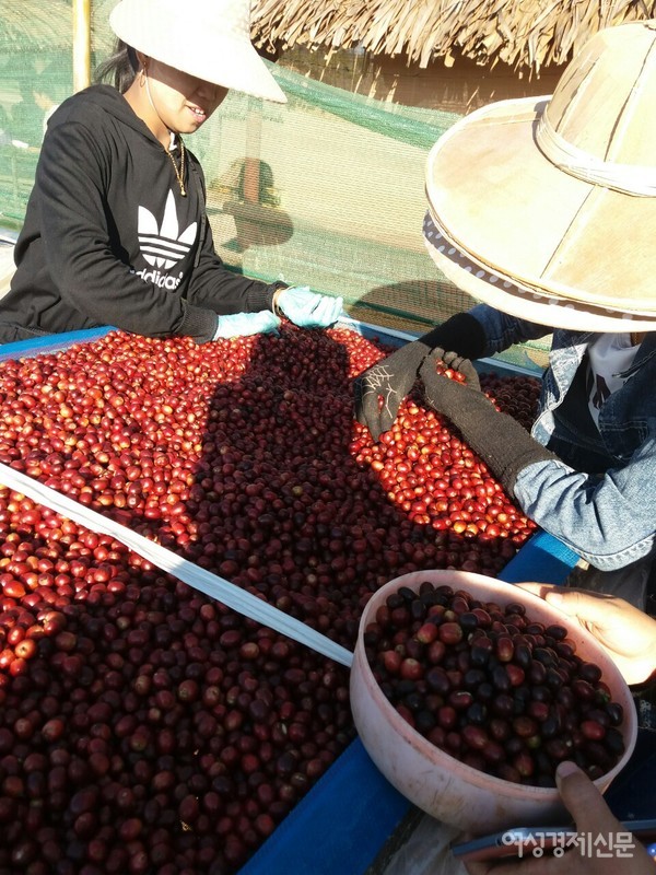 한국에 가면 미얀마산 커피를 잘 모릅니다. 아직 스페셜티 같은 좋은 등급이 없어서일까요. 이 나라는 그늘나무 아래 커피묘목을 하기 때문에 수확량이 적습니다. 생산 즉시 수출됩니다. 한국에서는 알려지지 않았지만 유럽이나 미국에선 예전부터 선호하던 커피입니다. 수확량이 적어서인지 베트남이나 브라질보다 높은 가격으로 거래되고 있습니다. 미얀마에서 재배되는 커피는 다양한 아라비카종입니다. 아프리카 케냐 계열, 카투아이, S795, 카티모르 계열, 남미 계열 등 여러 커피종자가 재배 중입니다. 최근 들어 가공시설과 가공방법이 다양해져 맛과 향이 달라지고 있습니다. 이곳 삔우린에는 커피협회가 대형 가공시설을 갖추고 일을 합니다. 수확된 커피체리가 이곳으로 모아집니다. 미국커피협회의 지원을 받아 가공기술 수준이 높아졌습니다.