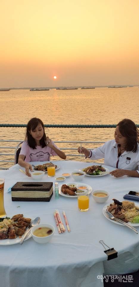 배에 오릅니다. 가족마다 각각 흰 테이블이 배정됩니다. 배 주위로 갈매기들이 날아들고 사람들은 가판에서 산 먹이를 던져줍니다. 한국 강화도에서 석모도로 갈 때 주던 그 먹이입니다. 선상에는 유럽 음악이 흐르고 배는 몸을 뒤틀어 양곤항을 떠납니다. 역사적으로 양곤항은 많은 이야기가 있는 곳입니다. 영국 식민시절 수많은 영국인들이 드나들던 곳. 군부통치시절엔 많은 외국인들이 추방되던 장소입니다. 옛날엔 현지인들이 여기서 외국으로 유학길에 올랐습니다. 아웅산 묘소 테러사건 때, 북한의 폭파범들이 총격전 끝에 잡힌 곳이기도 하지요.