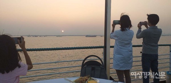 배는 미끄러지듯 강을 따라 흘러가고, 아득히 양곤의 불 밝힌 건물들이 보입니다. 어느 시인이 얘기했던가. 강은 과거와 이어져 미래로 흐르지만 언제나 제자리에 있는 듯 느껴집니다. 갑자기 어둑해진 도시에 석양이 강물을 적십니다. 수줍은 듯 발간 해가 산으로 숨는 순간입니다. 선셋(Sunset). 양곤항이 저물고 있습니다. 우리 삶에도 일몰이 있습니다. 배 난간에 서서 우리 인생의 선셋도 생각해봅니다.